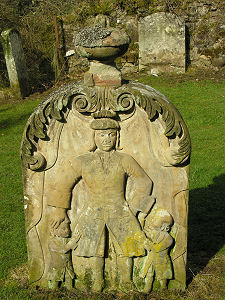 Opposite the Old Parish Church is Shillinghill, built in 1832 as a replacement for the old church, but in more recent times itself converted to residential use. To the east of the Old Parish Church is what looks like it might have once been a mill building, but in fact turns out to have been built as the manse for the 1832 church, on part of the original foundations of the cloister of the Templar monastery. The churchyard surrounding the Old Parish Church is home to a number of fascinating headstones, perhaps the most striking being that for John Craig, a local farmer who died in 1742. He is shown in his best clothing and with his children.