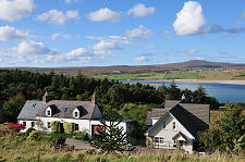 Tongue itself is an attractive village largely standing above the Kyle of Tongue, with some imposing stone buildings. Among these are large hotels like the Tongue Hotel and Ben Loyal Hotel. Views from the village are dominated by the bulk of Ben Loyal to the south and by Caisteal Bharraigh and the truly beautiful Kyle of Tongue to the west.