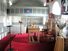 After the Reformation the nave of the Preceptory became the Parish Kirk. In 1756 the nave was demolished and the T-shaped Parish Kirk on view today was built on its foundations at a cost of £300. This comes complete with three galleries and a laird's loft, the fireplace for which cost a further £12. Because of the box pews and low galleries, the interior feels smaller than it actually is.