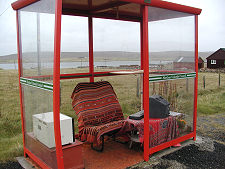 The ferry service that connects Unst to Yell (and via it to the Mainland of Shetland) and Fetlar runs from Belmont, at the south-west tip of the island. There is also a daily bus service from Lerwick. (Continues below image...)