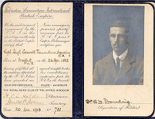 Dowding was an early aviation enthusiast and gained his Fédération Aéronautique Internationale Aviator's Certificate, number 711, early on the morning of 20 December 1913 in a Vickers biplane at the Vickers School of Flying, Brooklands. He then attended the Central Flying School at Upavon, where he received RFC certificate number 156 and was awarded his "wings" on 28 April 1914. In August 1914 he joined the Royal Flying Corps as a pilot on 7 Squadron. The following year Dowding became commander of 16 Squadron and he finished the war as a Brigadier General. At the end of the war he transferred to the newly formed Royal Air Force as an Air Commodore. He became an Air Marshal in 1933 and was knighted the following year.
