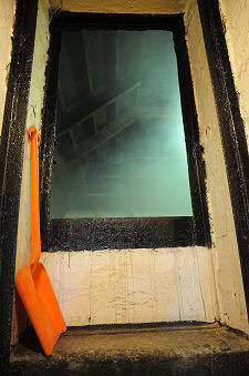 And in some cases it is possible to get a brief glimpse of the malted barley actually drying in the kiln. We say "brief glimpse" because the atmosphere inside the drying area of a kiln is invariable very smoky; invariably very hot (the aim is to heat the malted barley to a temperature that varies between 45°C and 75°C within the kiln); and usually very humid, depending on the point in the drying process the malt has reached.