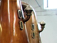 The third is more subtle and less reliable: the presence of one or more windows high on the neck is a reasonable indicator of a wash still rather than a spirit still. And the fourth? Well, we've never seen it mentioned, but in many distilleries you will find that the pipe work or the pipe connectors, and sometimes the fixtures and fittings on the outside of the stills, are colour coded.