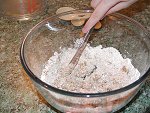 4. Place all the dry ingredients into a bowl and add a tablespoon of melted lard and five tablespoons of boiling water.