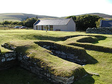 In the south of the West Mainland of Orkney, near the Hoy and Flotta ferry terminus at Houton, is a side road off the A964 complete with tourist signs directing you to the Earl's Bu and Round Church. Natural curiosity leads you a short distance along a single track road to a parking area at the Orkneyinga Saga Centre.