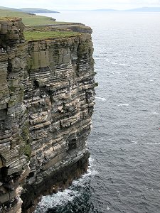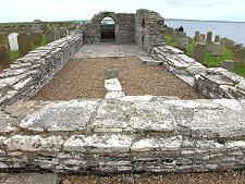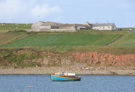 The west coast of this part of the island is marked by cliffs and caves, while inland lie a line of low hills, rising to 169m at Fitty Hill. At the Ness of Tuquoy a path leads from a small car park around the shore to the ruins of Cross Kirk, one of Westray's two medieval churches.