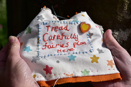 We've visited numerous times and there's always a chill here whatever the wider temperature. Even on one of the hottest days of the year (and for many years) in July a visit was enough to send shivers up the spine. When we visited in May 2024, someone had decorated the chain holding the gate closed with a piece of cross-stich proclaiming: "Tread Carefully fairies play here." It seems we're not alone in finding Cruggleton Church an unsettling - if fascinating - place.