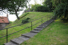 In typical Norman fashion, one of Muschamp's first moves was to build himself a secure foothold in the form of Wooler Castle. This stood on what is now known as Tower Hill or "The Tory", a steep sided promontory which can be found just downhill from St Mary's Church. Today this forms a small public park topped off by the town's war memorial. Lying close to the top of the hill are large chunks of masonry, which appear to be all that remains of a stone tower house built on the site in about 1500.
